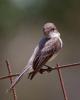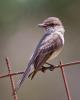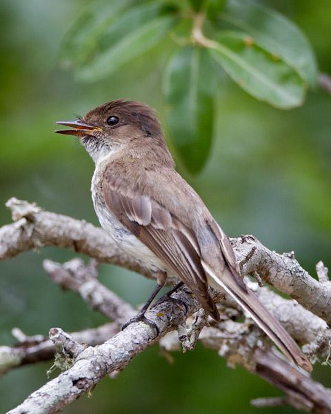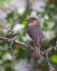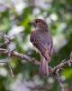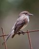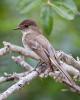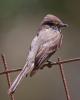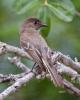 Eastern Phoebe (Sayomis phoebe) Wimberley, Hays County, Texas, May 2, 2012. It's nesting under the roof over the porch. The nest is composed of mud, sticks and grass (virtually adobe) plastered together over an electrical conduit over the kitchen window. The whiskers at the base of its beak are thought to assist with swallowing insects.