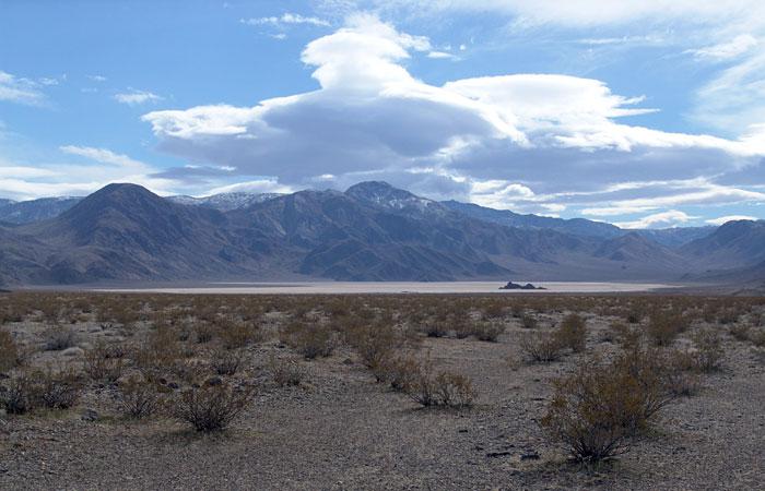 View of the approach to Racetrack Playa from the north.  The playa appears to be a dry lake bed from here.