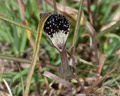 Swanflower (Aristolochia erecta) flower and seed pods. This is the host plant for the Pipevine Swallowtail. Waterstone Nature Preserve, Wimberley, Hays County, Texas. Canon 1Ds Mark III with a 300 mm f/4 IS lens with a 2x teleconverter and fill flash. Exposure was manual, f/22, 1/300s, ISO 400, 05-25-08.